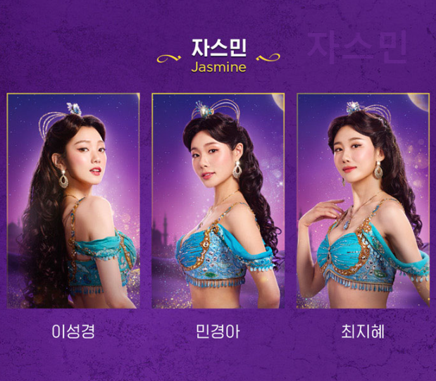 - 화려한 무대 연출: 마법의 램프, 신비로운 동굴, 황금빛 사막 아그라바의 풍경 등이 생생하게 구현되어 한 편의 동화 같은 분위기를 자아냅니다.