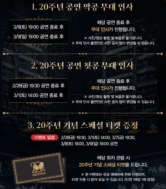 - 프리뷰 할인: 10% (1인 4매 한정, 2/28 19:30, 3/1 14:00 공연)