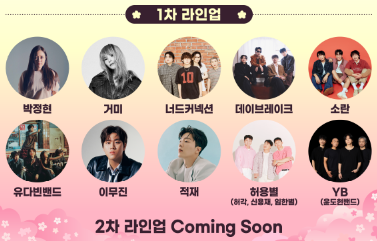 이틀 동안 펼쳐지는 이번 페스티벌은 벚꽃이 만개하는 시기에 열려, 아름다운 풍경과 함께 음악을 즐길 수 있는 절호의 기회입니다.